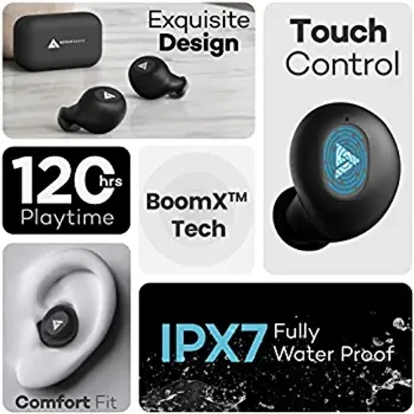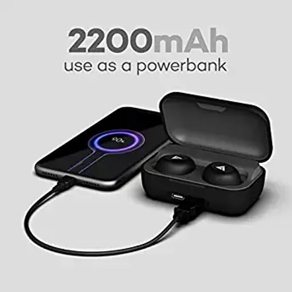 Boult Audio AirBass PowerBuds with Inbuilt Powerbank, 120H Total Playtime, IPX7 Fully Waterproof, Lightning Boult Type-C Fast Charging, Low Latency Gaming, TWS Earbuds with Pro+ Calling Mic (Black)
