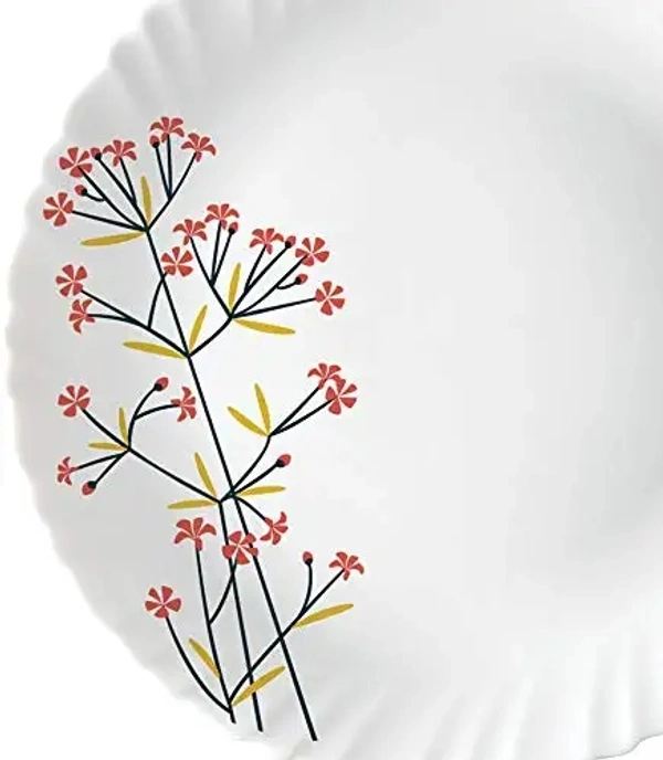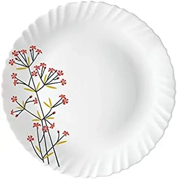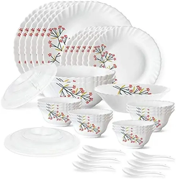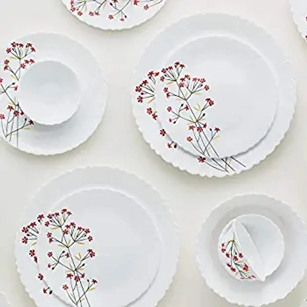 Larah by Borosil Red Bud Silk Series Opalware Dinner Set, 35 Pieces, White